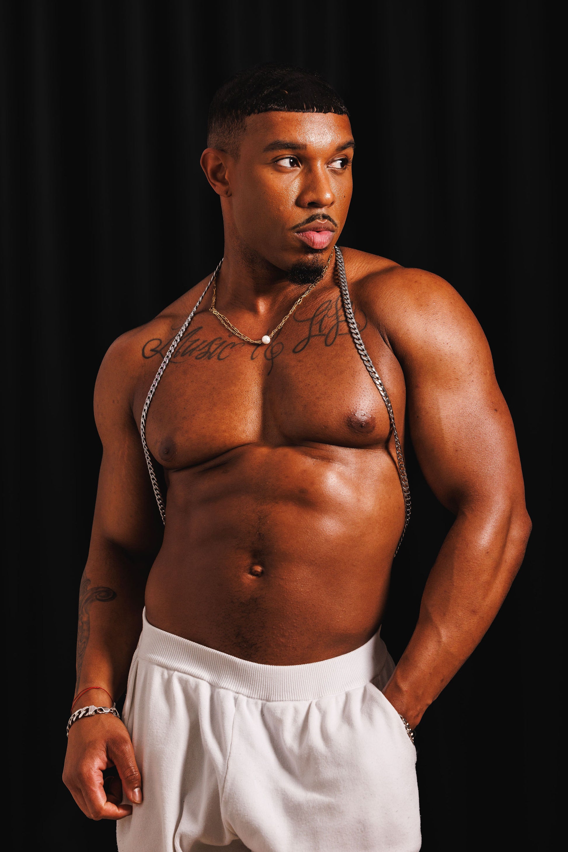 Stainless steel XL curb chains of two types, plus two XL sterling silver 69 clasps create  This HoG Body Harness I.