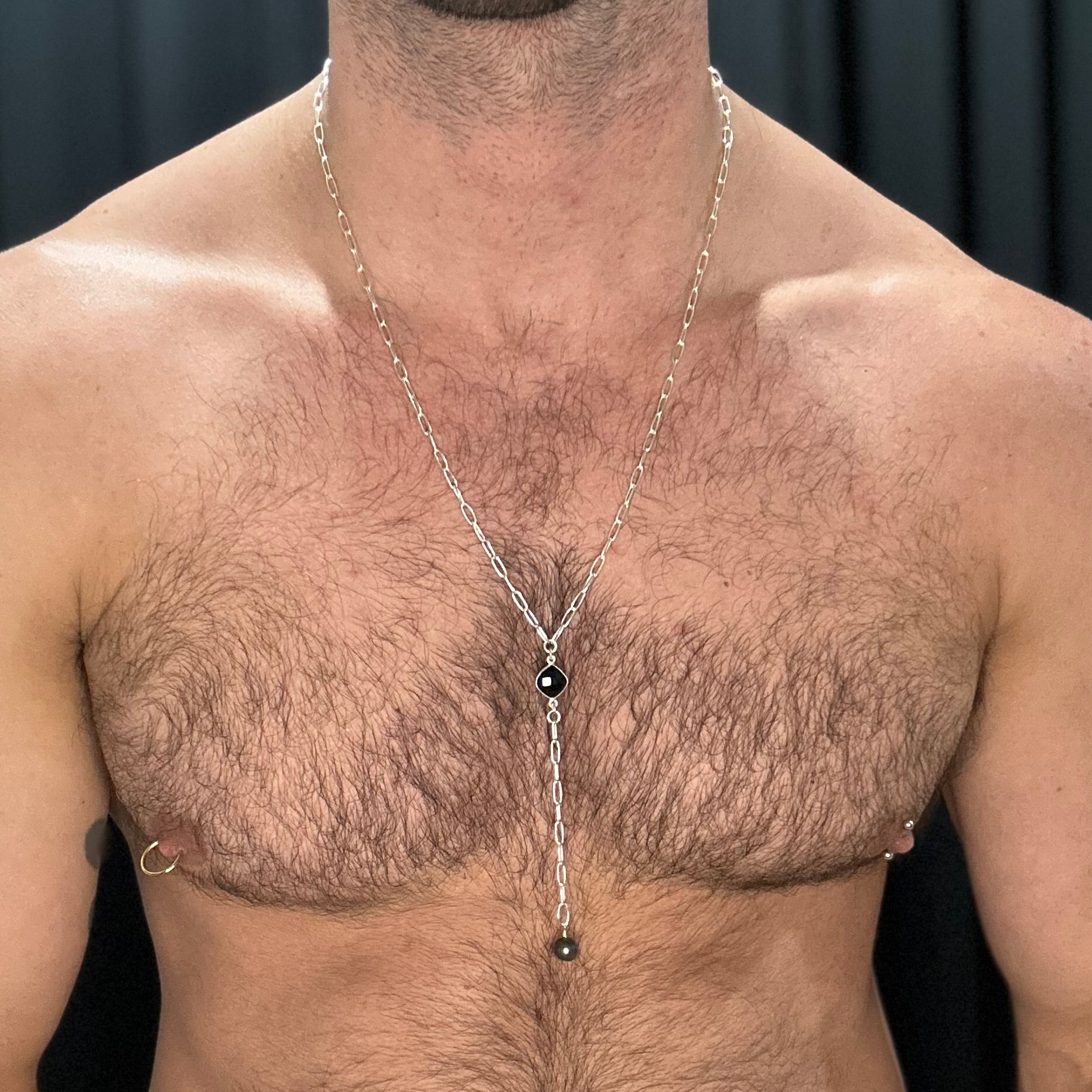 This edgy Lariat features a modern look that will elevate any outfit. The Dionte design is accented with the paperclip chain, a freshwater pearl drip and gemstone, adding a touch of elegance.