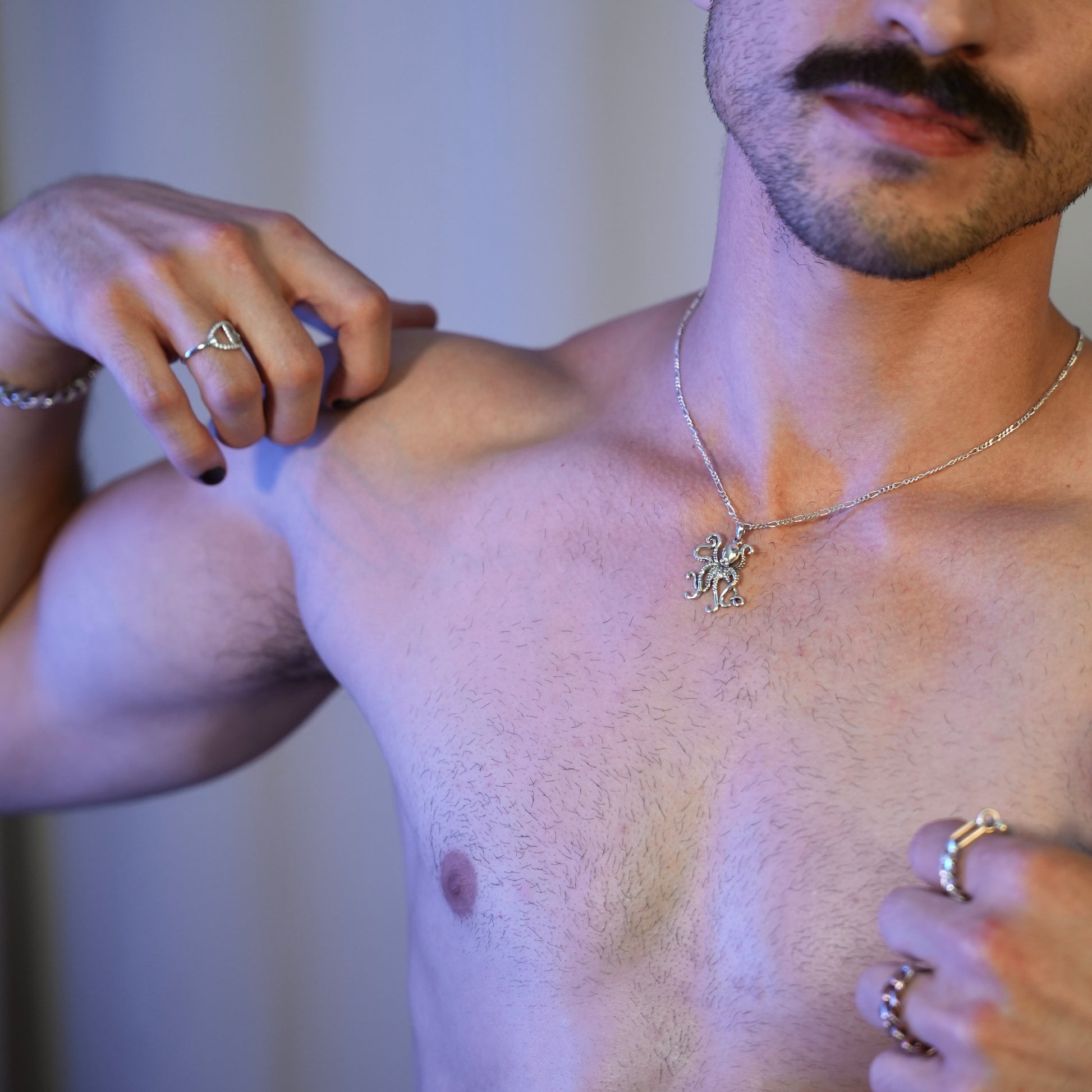 Elevate your style with our sterling silver charm necklace. Choose from two different chain types to customize your look. Experience the beauty of sterling silver while showing off your unique style.